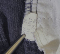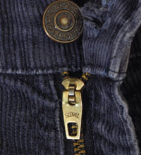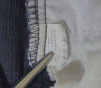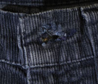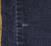 ダメージ: ボタンホールに若干のダメージ(ボタンはとまります)、右膝上付近に小穴、全体に使用感と色褪せとスレ