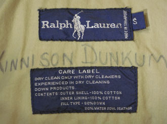 ダメージ: タグ下に文字、裾と袖口に擦れ