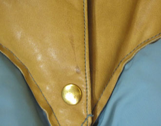 レザー部分と前合わせに若干のシミ、全体的に若干の黄ばみと薄いシミ