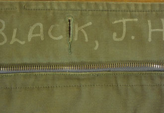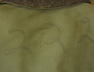 ダメージ: 所々に文字、インナーに剥げ、裾に擦れによるダメージ、ジップ交換済み、全体にシミと擦れ