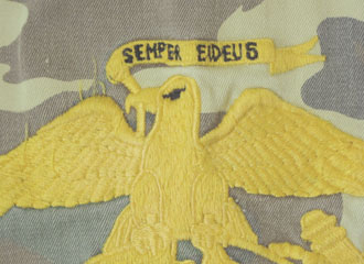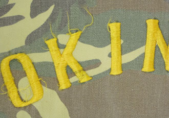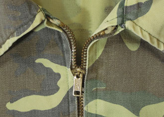 ダメージ: 左肘にシミ、右袖と右ポケット付近などにシミと擦れ、刺繍所々に糸抜け、CONMARジップに交換済み