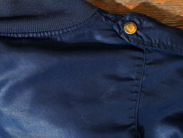 ダメージ: インナーに薄いシミ、ジップヘッド部分に糸抜け、右袖にペンキ痕、両袖にスレとシミ、左袖リブに小穴、全体所々に薄いシミとスレ