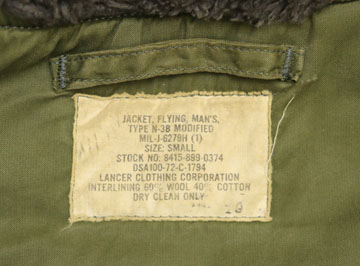 1972年 SCOVILL ZIP 袖ジップはGRIPPER ZIP リアルファー MIL-J-6279H LANCER CLOTHING CORPORATION