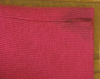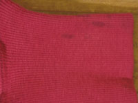 ダメージ: 左袖リブにシミ、若干の使用感と色褪せ