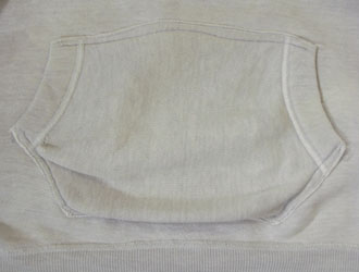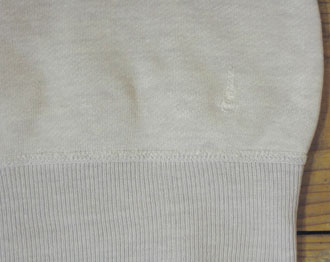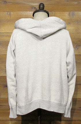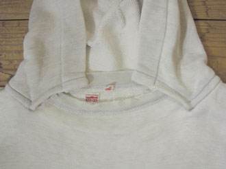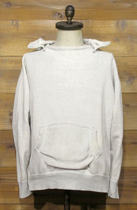 ダメージ: 襟と両袖口にダメージ、両袖に小穴、フードとポケットに擦れと小穴と糸抜け、背面数か所に小穴、全体に使用感と色褪せ、色抜けと薄いシミ