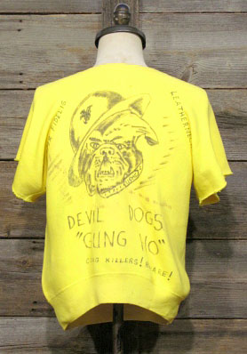 ダメージ: 所々にシミ、首下と前身頃にほつれ、袖切りっぱなし