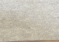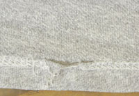 ダメージ: 前身頃中央と左袖にシミ、裾に若干の糸抜けによるほつれ