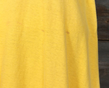 ダメージ: 使用感と毛羽立ち、前身頃にシミ