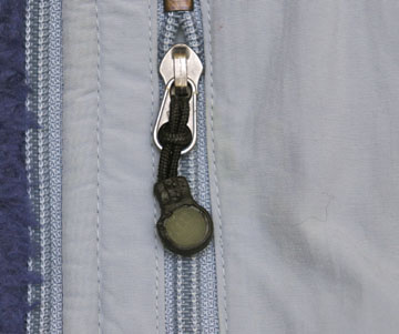 ダメージ: 使用感とパイルの潰れ、ジップヘッドにダメージ、パイピングにスレ、ナイロン部分に薄い汚れ