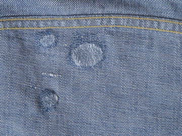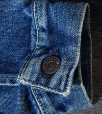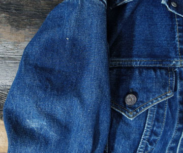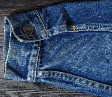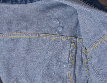 ダメージ: 左ポケットにスレ、右袖にワッペン痕、所々に若干の糸抜け、両袖や背面所々にリペア、両袖口にスレ、所々に薄いシミ
