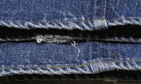 ダメージ: 裾に擦れ、膝などにシミ、スレーキ部分に文字