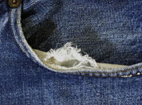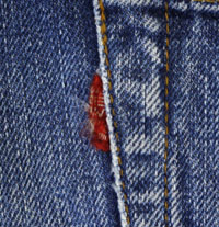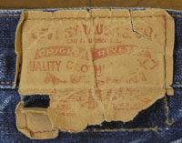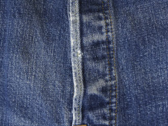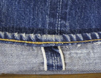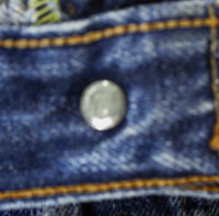 ダメージ: パッチと赤タブにダメージ、左フロントポケットスレーキにダメージ、前たてに擦れ、左腿にほつれ、両裾に擦れ、両膝などにシミ