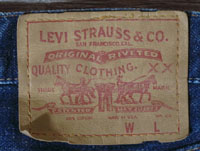 ダメージ: 左腿付近などに若干のシミ、裾ステッチに若干の糸抜け
