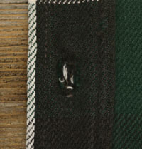ダメージ: 使用感と若干のスレ、前身頃などにスレと薄い汚れ、右袖口と袖口ボタンホール、左ポケットボタンホール、第6ボタンホールにダメージ(ボタンはとまります)