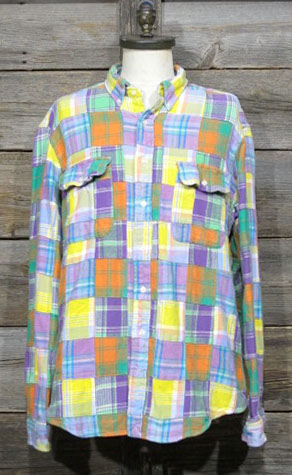 [SW195] Ralph Lauren パッチワーク ボタンダウン ヘビーフランネルシャツ