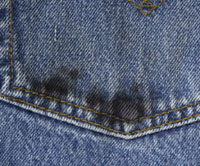 ダメージ: 裾に擦れ、左バックポケットにシミ