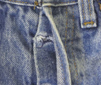 ダメージ: 赤タブに若干のダメージ、股に若干のスレ、フライボタンホールにダメージ(ボタンはとまります)