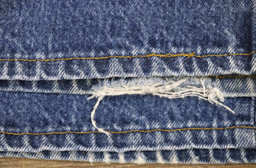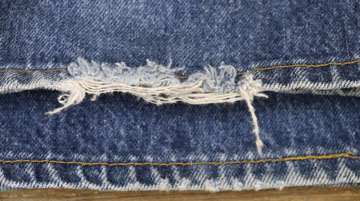 ダメージ: 裾にスレとダメージ、所々に薄い汚れとスレ、左膝にシミ